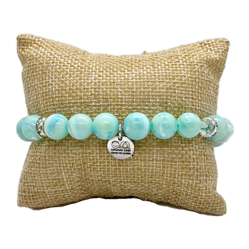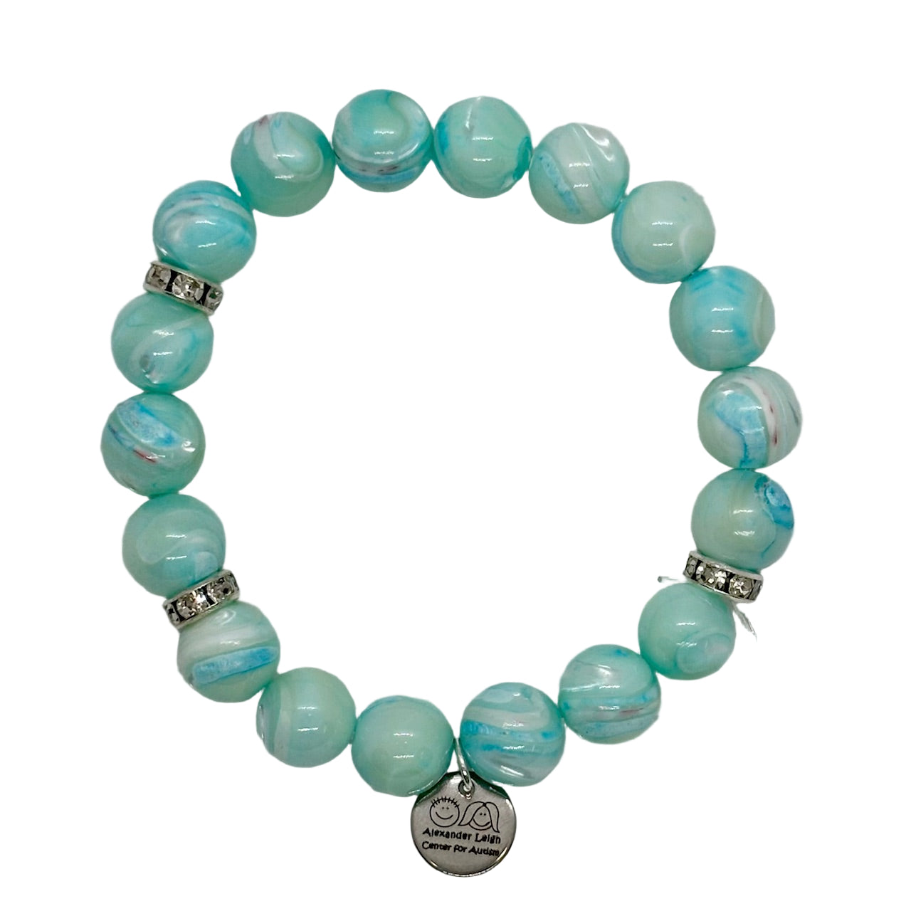 This is a design first for this Im.  This bright bracelet with just a touch of sparkle reminds her of the sea and icicles.  The ALCAbility charm helps you show your ALCA pride!
